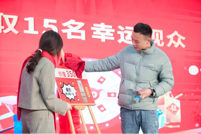 百份精美好禮:美的大冰箱、洗衣機(jī)、平板電腦、888元現(xiàn)金紅包、按摩儀、微波爐、足浴盆、年貨大禮包、空氣炸鍋…… 員工們真是拿到手軟,笑得都快合不攏嘴啦!