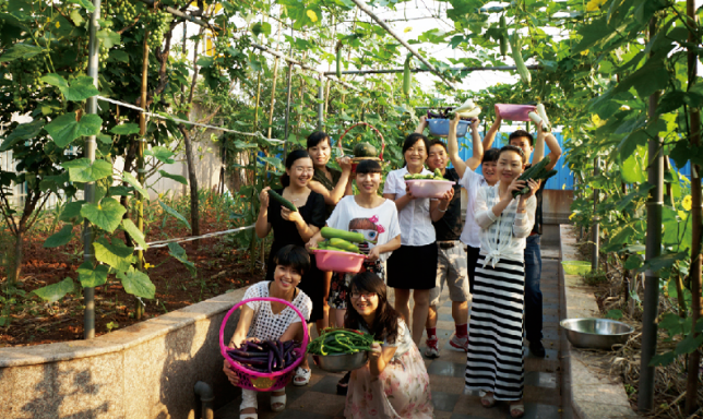 “雙童”一期廠區(qū)的屋頂菜園迎來大豐收