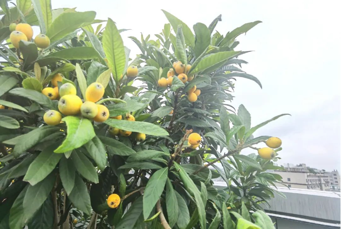 瞧!在“雙童”空中花園的枇杷林,一棵棵枇杷樹上爬滿了黃澄澄的枇杷,把樹枝都壓彎啦!粒大飽滿的枇杷果肉都快撐破果皮,讓人看著直流口水,巴不得一躍而上,盡情品嘗這美味!