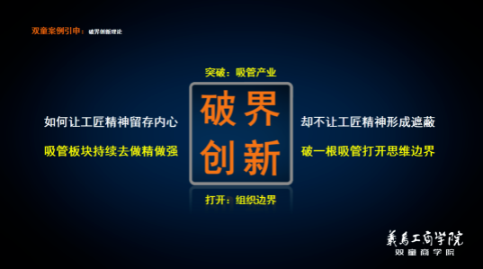 經(jīng)過(guò)長(zhǎng)期的學(xué)習(xí)與反思,“雙童”發(fā)生了改變,不再堅(jiān)持一根吸管,而是選擇破界競(jìng)爭(zhēng)。通過(guò)把冗余的生產(chǎn)空間、硬件和設(shè)備都充分地利用起來(lái),同時(shí)在這個(gè)過(guò)程中實(shí)現(xiàn)扁平化、去中心、破自我、拆圍墻、拓邊界。由此,雙童不斷涌現(xiàn)出內(nèi)部員工主動(dòng)創(chuàng)業(yè),從原來(lái)的管理者轉(zhuǎn)身成為創(chuàng)業(yè)者。