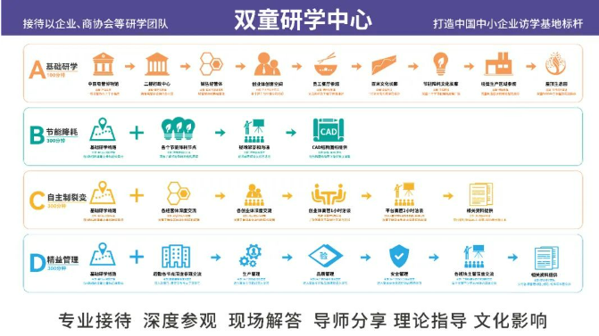 “雙童”第十創(chuàng)業(yè)體——雙童研學中心,于2023年3月成立。一直以來,“雙童”獨特的企業(yè)經(jīng)營理念,吸引了眾多社會關(guān)注,每年都有大量的社會組織和高校團體等前來調(diào)研參觀。為更好地賦能,組建了雙童研學中心,系統(tǒng)化為更多對雙童模式感興趣的人們提供場景學習。