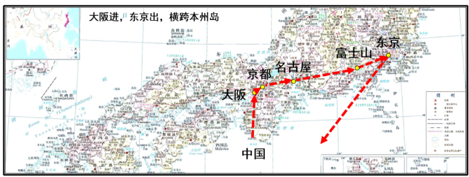 本次日本研學,將以富士山為中心,從關西到關東,直線距離約600km。