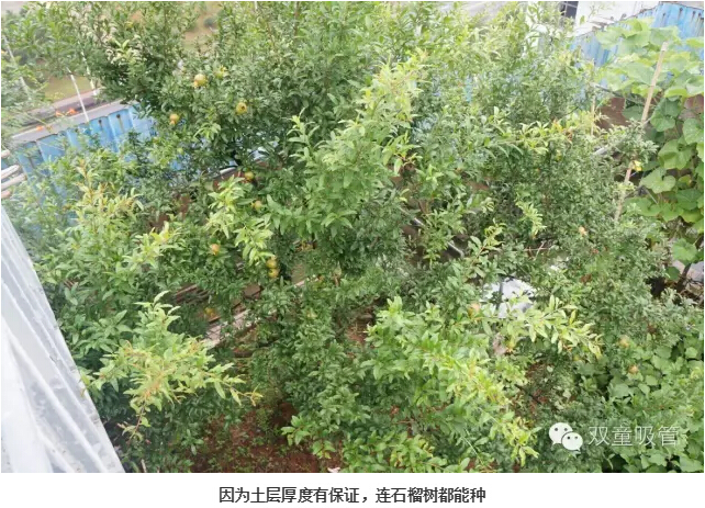 首先,我們樓頂菜園的土壤厚度達到了1.2-1.5米,有了這么厚的土壤保證,我們才能種起來各類果樹。其次,我們當家人樓仲平早在大樓設計之初,就已經(jīng)把這些承重、滲水的問題考慮進去,并通過科學的設計解決了問題,就連土壤都是大樓結頂之時,趁著塔吊還沒拆,讓塔吊直接把土壤吊到九樓的!
