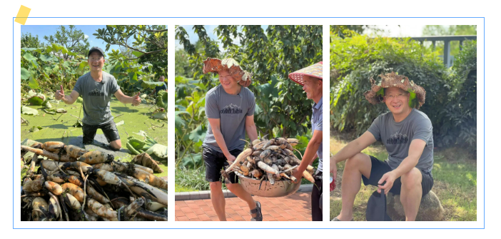 你看!樓仲平帶著大伙一起前往藕塘,開展了火熱朝天的挖藕工作。下面就跟隨吸管妞的腳步一起來看看!