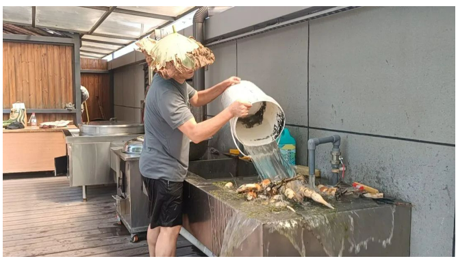 ▲ 可愛的樓大大戴著荷葉帽在清洗蓮藕