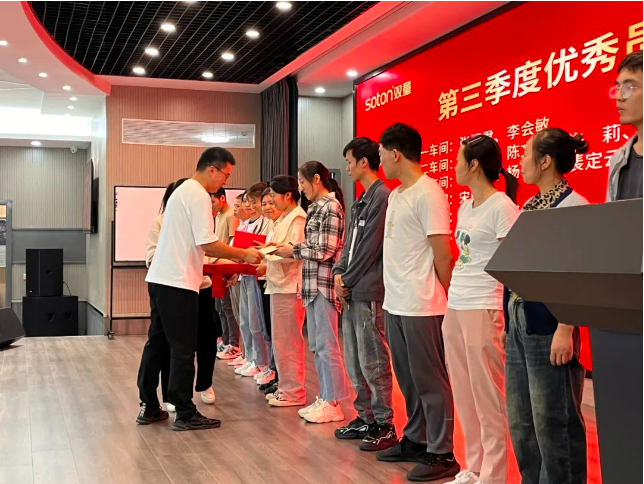當(dāng)頒獎(jiǎng)音樂(lè)響起,現(xiàn)場(chǎng)氛圍瞬間被點(diǎn)燃,在陣陣掌聲中,“優(yōu)秀員工”獲得者走向舞臺(tái)中央,在聚光燈下,總經(jīng)理李二橋依次為他們頒發(fā)榮譽(yù)證書。相信這一刻,對(duì)每一位“優(yōu)秀員工”來(lái)說(shuō)都意義非凡,對(duì)臺(tái)下的全體員工也是莫大的鼓舞!