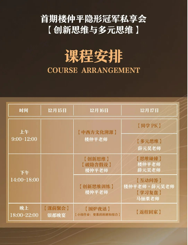 就在12月15日-17日,我們即將迎來(lái)首期《樓仲平·隱形冠軍私享會(huì)》第二模塊的學(xué)習(xí)征程,本模塊的主題是【創(chuàng)新思維】,關(guān)鍵詞為“破圈”!
