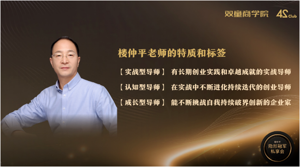 而企業(yè)持續(xù)發(fā)展過(guò)程中漫長(zhǎng)的冠軍之路,就需要標(biāo)桿企業(yè)和良師益友的指引與陪伴,同時(shí)具備實(shí)戰(zhàn)型、認(rèn)知型、成長(zhǎng)型特質(zhì)的老師是不二選擇,而樓仲平老師恰恰具備了上述各項(xiàng)的所有條件。