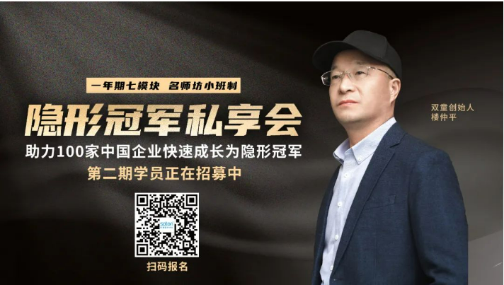 歡迎您走進「樓仲平隱形冠軍私享會」課堂,在樓仲平老師的陪伴下,學習借鑒雙童30年的成功的經(jīng)驗積累,助力您在創(chuàng)業(yè)路上更加順遂,在遇到抉擇時能做出更加理性的判斷!
