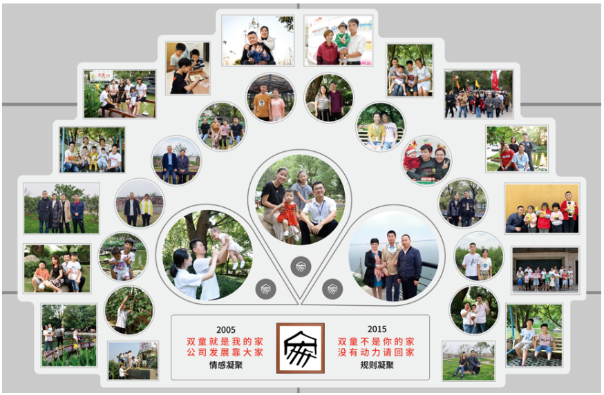 走進(jìn)雙童,你能看到七八百員工的背后,是一兩百個(gè)家庭的聯(lián)結(jié),我們鼓勵(lì)單身員工在公司尋找對象、成立家庭、住宿用餐,甚至在內(nèi)部創(chuàng)業(yè)。我們也竭盡所能幫助員工的子女,解決公辦學(xué)校的就學(xué)難題。我們對員工的吃飯和住宿是完全免費(fèi)的,對家屬也是補(bǔ)貼一半;對于帶著小兒上班的,我們愿意承擔(dān)因此可能產(chǎn)生的風(fēng)險(xiǎn),雖然工廠里有小兒會(huì)產(chǎn)生一定的風(fēng)險(xiǎn),但事實(shí)是20年過來,在我們的精心管理下,從來沒有就產(chǎn)生過任何的惡性事故。