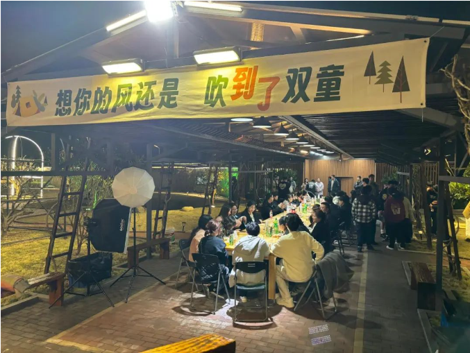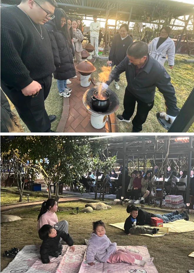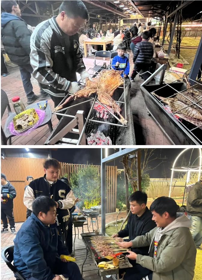 晚宴結(jié)束后,大家陸續(xù)來到綠廊閣和望月臺,開啟另一個環(huán)節(jié):燒烤趴和圍爐夜話。