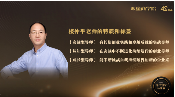 而企業(yè)持續(xù)發(fā)展過程中漫長的冠軍之路,就需要標桿企業(yè)和良師益友的指引與陪伴,同時具備實戰(zhàn)型、認知型、成長型特質(zhì)的老師是不二選擇,而樓仲平老師恰恰具備了上述各項的所有條件。