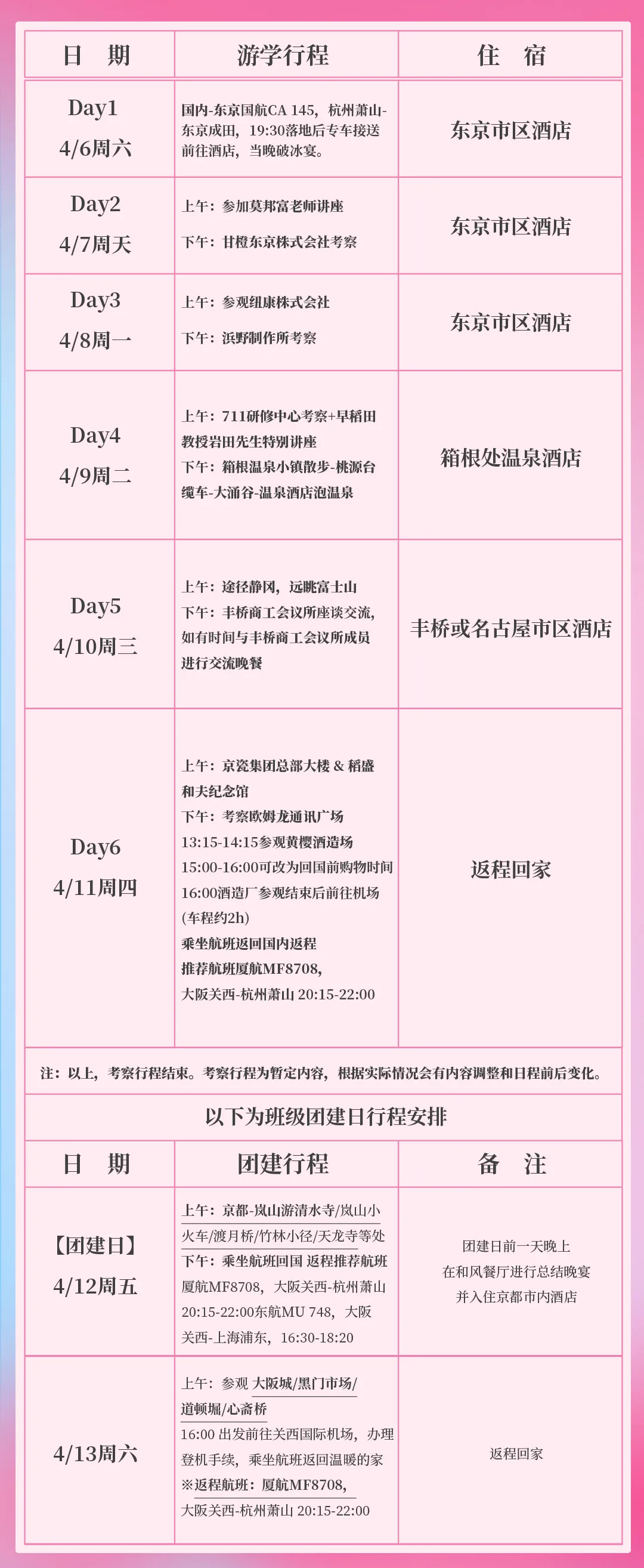 為了增強班級凝聚力,也為本次《冠軍之旅》增添更多美好的回憶素材,在結(jié)束游學參訪之后,課研組還將組織一場異國的班級團建。