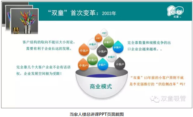 在義烏,小商品的門檻低,不起眼,吸管更是如此。但我們雙童吸管卻能把一種隨處可見的小商品在義烏市場(chǎng)上做到脫穎而出,到底是有什么力量在支撐呢?今天,吸管妞就向大家揭秘我們“雙童”的經(jīng)營(yíng)戰(zhàn)略,聊聊我們拒絕“大鱷魚”,專注“小蝦米”的“小客戶原則”!這個(gè)案例可是先后被收錄到清華、浙大等幾十所大學(xué)的MBA教材呢!