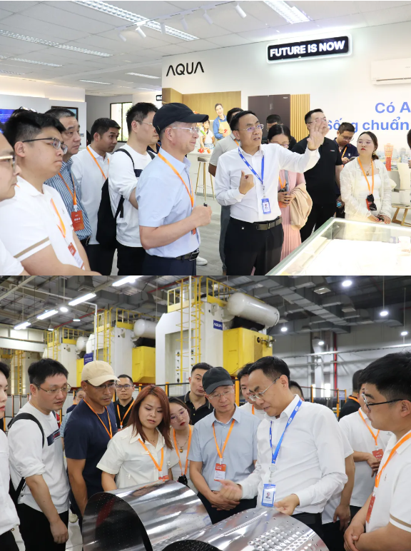從寶鵬工業(yè)區(qū)出來以后,樓仲平老師帶領(lǐng)研學(xué)班學(xué)員走進(jìn)了中國(guó)電器知名企業(yè)海爾在越創(chuàng)辦的AQUA公司,它是中國(guó)企業(yè)成功留在越南并融入本土化的企業(yè)代表,非常具有借鑒意義。