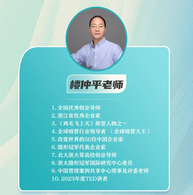 【樓仲平隱形冠軍私享會】是樓總唯一一個全面系統(tǒng)交付46年創(chuàng)業(yè)歷程的經(jīng)驗(yàn)總結(jié)和思維模型的課程。全年6期課程,樓老師23天深度陪伴,從戰(zhàn)略到組織,從創(chuàng)新思維到企業(yè)家精神,幫助你的企業(yè)全方位升級。