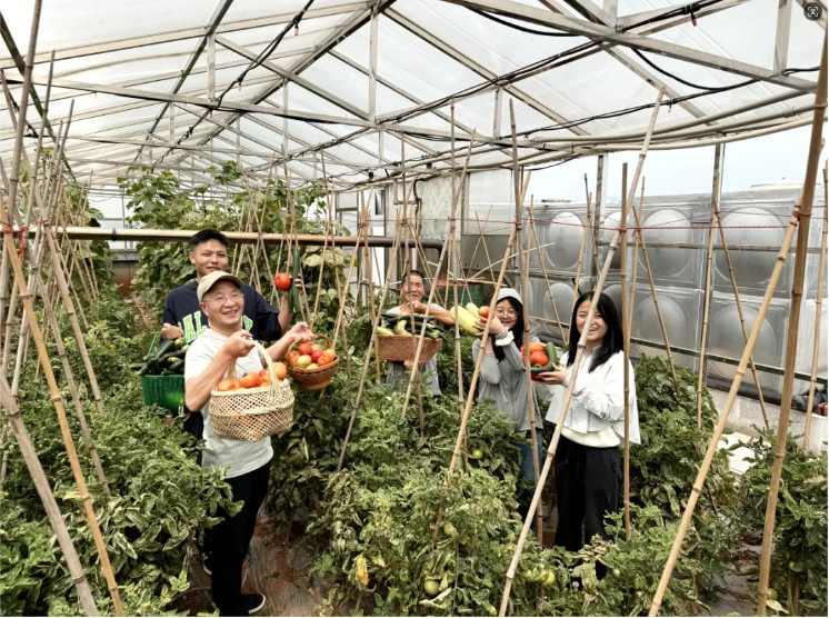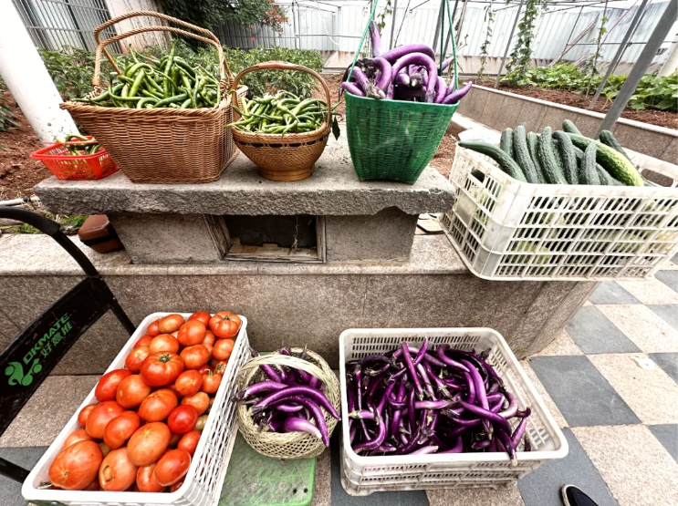 一走進(jìn)菜園,當(dāng)家人樓總就帶著小伙們開啟“戰(zhàn)斗”模式,毫不夸張,只一會兒功夫,黃瓜、番茄被裝滿了一筐又一筐,這種在工廠里也能貼近自然的農(nóng)家生活,真的超幸福!