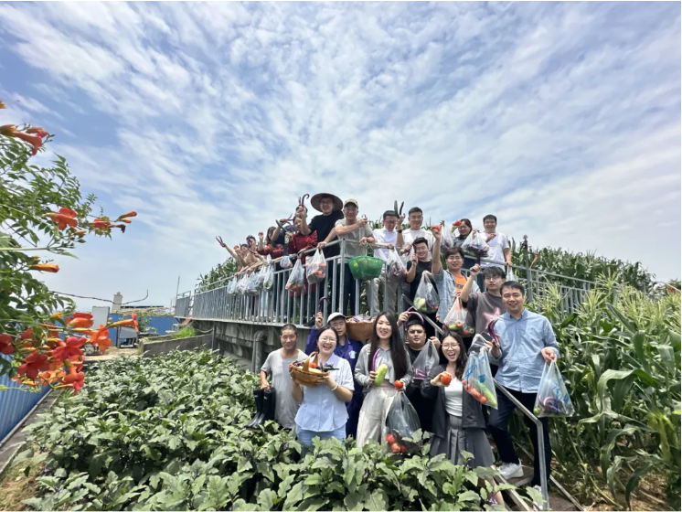 剛好快到中午下班時間,趕得上燒午飯,于是樓總在我們的分菜群里一發(fā)照片,員工紛紛趕到屋頂來了!