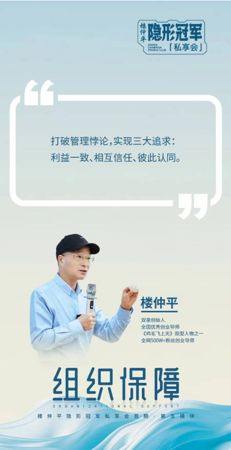 企業(yè)持續(xù)發(fā)展過程中漫長的冠軍之路,需要標桿企業(yè)和良師益友的指引與陪伴,而找老師,不要找見識過的老師,而要找建設過的老師!同時具備實戰(zhàn)型、認知型、成長型特質(zhì)的老師是不二選擇,而樓仲平老師恰恰具備了上述各項的所有條件。