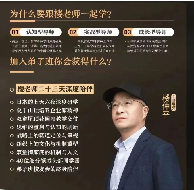 如果你是創(chuàng)業(yè)者、學習者、思想者,希望在經(jīng)營領域有自己的思考和洞察,那么樓仲平【弟子班】就是為你量身定制,今年最后一期招生,一班只招40位同學,名額所剩不多,抓緊機會哦!