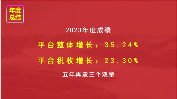 2023年,平臺(tái)整體增長(zhǎng)35.24%;平臺(tái)稅收增長(zhǎng)23.3%