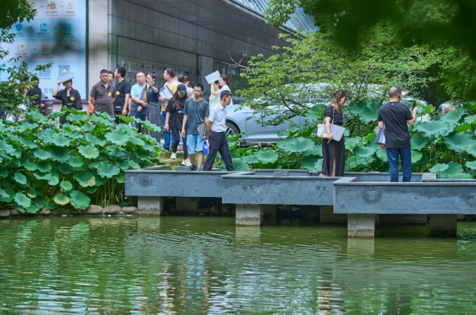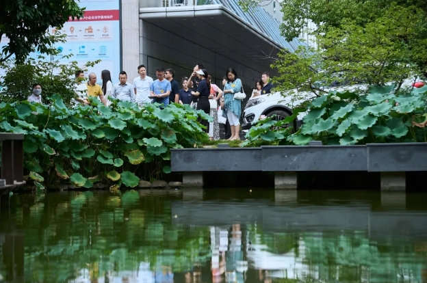 傍晚,員工們?nèi)齼沙扇郝綐蚺?,沉醉荷池美景。?tīng)瀑布潺潺,看斜陽(yáng)映水,魚(yú)兒游弋添生機(jī)。時(shí)光寧?kù)o美好,幸福感滿溢,令人向往,愜意無(wú)比!