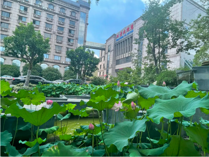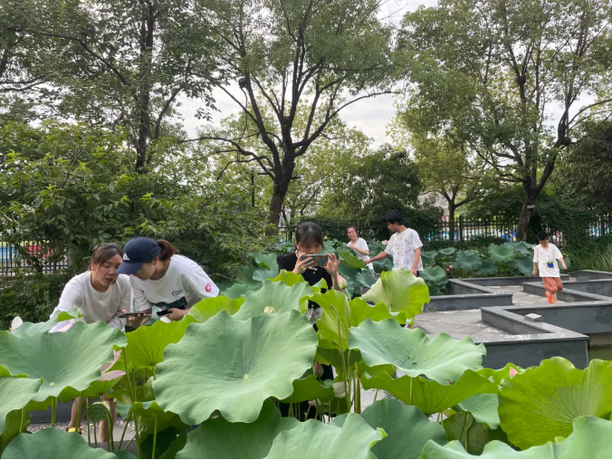 景觀池中還長(zhǎng)出了許多蓮蓬呢!