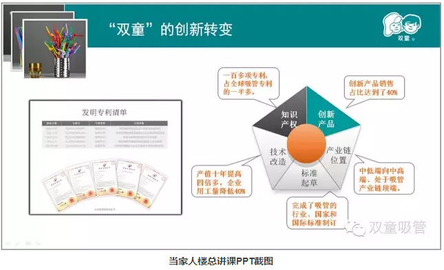 創(chuàng)意改變生活!在我們“雙童”的吸管博物館里有著各種各樣的創(chuàng)新吸管。愛心吸管、哈哈吸管、風(fēng)車吸管...... 一根吸管身上有著四五個(gè)專利,是不是聽著就覺得不可思議?吸管在外人看來,薄薄的管壁,兩頭中空,簡單得不能再簡單,毫無技術(shù)含量可言。然而“雙童”卻擁有了100多項(xiàng)專利,掌握了全球吸管行業(yè)近2/3的專利,并且主導(dǎo)著全球吸管行業(yè)的行業(yè)標(biāo)準(zhǔn)制定。