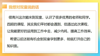 課程雖然會“殺青”,但是同窗的情義永不解散,也相信完成了最后《成長有速度》模塊的學(xué)習(xí)后,能夠在企業(yè)內(nèi)部落地更有深度,同學(xué)們都能成為一個卓越的管理者,帶領(lǐng)企業(yè)的伙伴、也帶著自己,攀登一個新的高度!