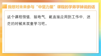 周上老師還在課上告訴同學(xué)們,擁有能力和心力之后,還要有規(guī)劃能力,才能實現(xiàn)倍速成長!因為“如果你不按照想的方式去活,那你遲早會按照活的方式去想”,沒有提前規(guī)劃人生,只能被推著往前走,最終成為“泯然眾人”。