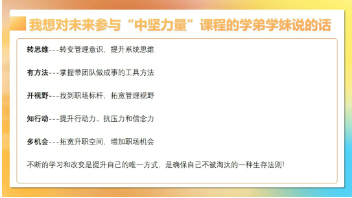 在完成了思維有高度、帶人有溫度、做事有力度三個模塊課程學(xué)習(xí)后,【中堅力量】將最后的落腳點放在了“成長有速度”!