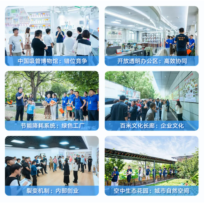 ?中國(guó)吸管博物館:學(xué)員們可以近距離觀看“一根吸管”的千變?nèi)f化,直觀體驗(yàn)產(chǎn)品創(chuàng)新與錯(cuò)位競(jìng)爭(zhēng)戰(zhàn)略的震撼力,深刻感受產(chǎn)品創(chuàng)新和錯(cuò)位競(jìng)爭(zhēng)思維模型帶來(lái)的強(qiáng)大能量。?“雙童”全透明辦公區(qū):學(xué)員們深入了解“雙童”獨(dú)特的企業(yè)文化如何促進(jìn)溝通與協(xié)作,學(xué)習(xí)如何推動(dòng)公司高效運(yùn)轉(zhuǎn)。?創(chuàng)業(yè)共享平臺(tái):學(xué)員們可以學(xué)習(xí)到“雙童”如何通過(guò)自主制創(chuàng)業(yè)裂變機(jī)制激發(fā)員工積極性,實(shí)現(xiàn)從被動(dòng)到主動(dòng)的轉(zhuǎn)變。