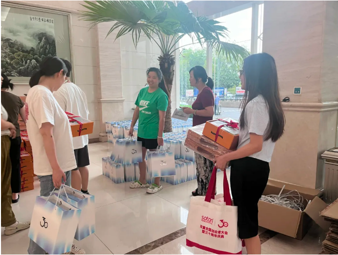 中秋節(jié)雖然還沒有來臨,但后勤部門一早就已經(jīng)開始了熱火朝天的準備工作,將一盒盒精心準備的月餅、水果、吸管禮盒、雙童文創(chuàng)裝入禮品袋中。