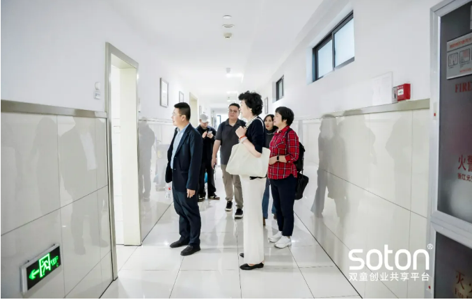 隨后,一行人參觀了“雙童”的行政區(qū)域,觀摩了各創(chuàng)業(yè)體的辦公場所,趙曙明教授和國家管理案例共享中心各位老師一行與各負(fù)責(zé)人親切地進(jìn)行交流。