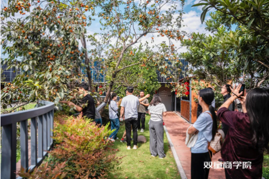 恰逢“雙童”屋頂花園的柿子成熟,大家一起在現(xiàn)場課堂途中駐足采摘,是一次別有風味的學習體驗