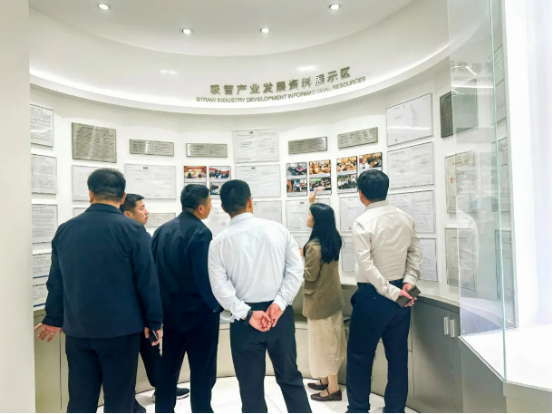 講解員為考察團(tuán)一行介紹“雙童”的吸管標(biāo)準(zhǔn)文件