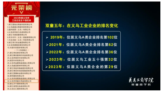2023年,平臺整體增長35.24%;平臺稅收增長23.30%,成功登榜“義烏工業(yè)企業(yè)五十強第29名”