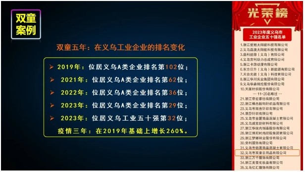 目前,雙童創(chuàng)業(yè)共享平臺通過裂變機(jī)制已孵化了16家創(chuàng)業(yè)體,形成了以吸管制造業(yè)為基礎(chǔ),以國際貿(mào)易和創(chuàng)業(yè)教育兩大板塊為融合的新的產(chǎn)業(yè)模式,做到了輕重結(jié)合、虛擬結(jié)合,增強(qiáng)了企業(yè)的活力和反脆弱性,同時(shí)實(shí)現(xiàn)了企業(yè)和員工的共同富裕!
