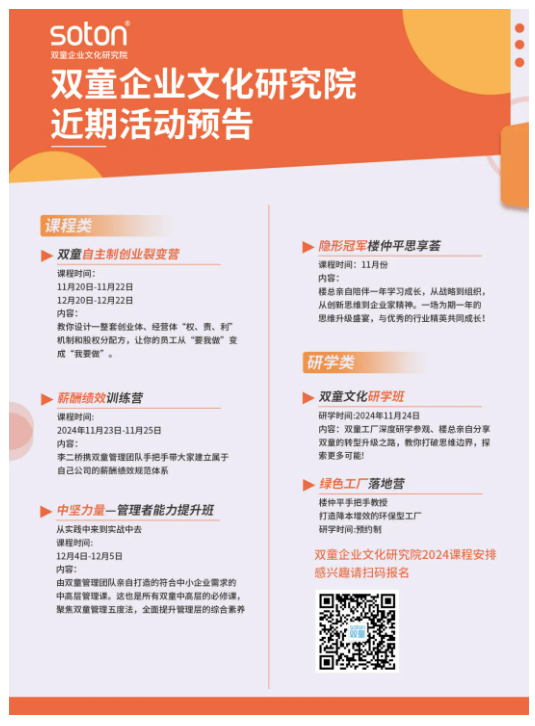 4)領(lǐng)袖智慧模塊:《隱形冠軍樓仲平思享薈》通過樓仲平老師的全年深度教學(xué)及雙童“中國式管理體系”輸出,致力于培養(yǎng)更多中國隱形冠軍企業(yè),實(shí)現(xiàn)企業(yè)家的認(rèn)知升級、實(shí)戰(zhàn)落地。