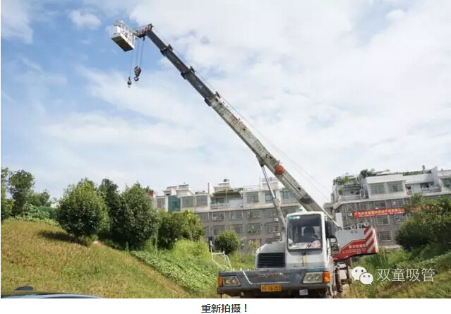 周一的清晨,當家人樓總早早地就來到了公司,而在公司門口,還停著一輛大吊機!用吸管君的話說,這是要搞事情?。」?,不一會兒,幾個拿著專業(yè)攝影機的攝影師也來到了公司,大家伙一起來到了“雙童”的斜對面,當家人說,我們要隔著北苑路這條大馬路,借助近50米高的大吊機,拍攝“雙童”廠房全景!