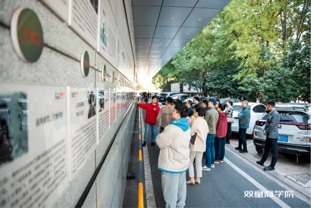 百米文化長廊,用文字與圖片記錄“雙童”不同階段的生長。學員們從這面墻上可以溯源“雙童”的前世今生;了解義烏市場的風云變幻和董事長樓仲平的創(chuàng)業(yè)故事,以及“雙童”成長歷程與經(jīng)營文化、理念等內(nèi)容,情節(jié)跌宕起伏,妙趣橫生。