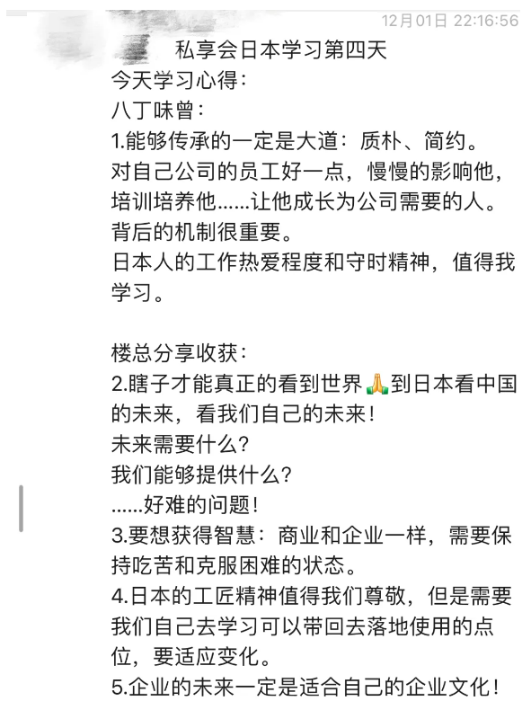 “弟子班”旨在助力學(xué)員成為隱形冠軍,因此在“冠軍之旅”模塊的行程全部根據(jù)學(xué)員們的行業(yè)及需求來定制,著重學(xué)習(xí)日本的專精特新企業(yè)如何長(zhǎng)存發(fā)展。