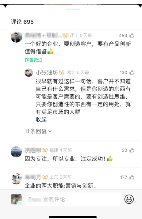 實際上,這條爆款視頻只是出自《雙童文化研學班》中一個簡短的學員游學片段。在這一分鐘的視頻中,樓總金句頻出,“理解創(chuàng)新的本質(zhì),做價值而非卷價格”“一家好的企業(yè)應該能創(chuàng)造顧客”等觀點,收獲了眾多網(wǎng)友的認可!