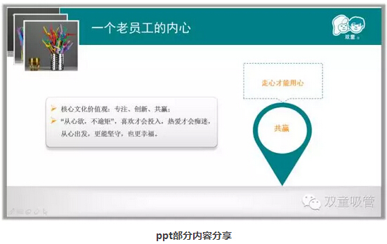 學(xué)習(xí)會進(jìn)行到最后,我們的李總也上臺發(fā)言了。他說,這本教材書籍其實是當(dāng)家人樓總和幾位主要的高層領(lǐng)導(dǎo)全部看過這本書后,覺得這本書相當(dāng)契合我們雙童的企業(yè)文化,決定送給每個員工一本!也希望大家可以提前預(yù)習(xí),以后多多上臺發(fā)表讀后感!哈哈,放心吧,吸管妞今天晚上就看!