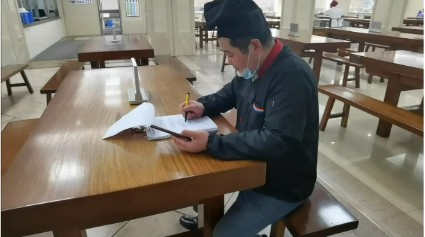 食堂師傅正在對(duì)驗(yàn)收回來(lái)的菜品進(jìn)行登記