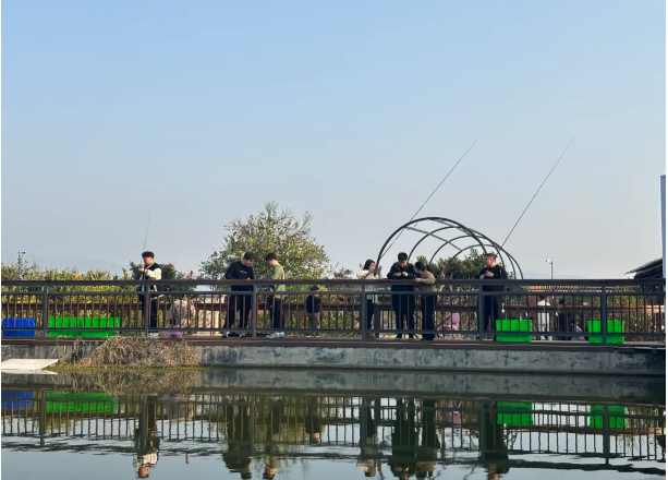 員工們?cè)谖蓓敾▓@釣魚,好愜意呀~