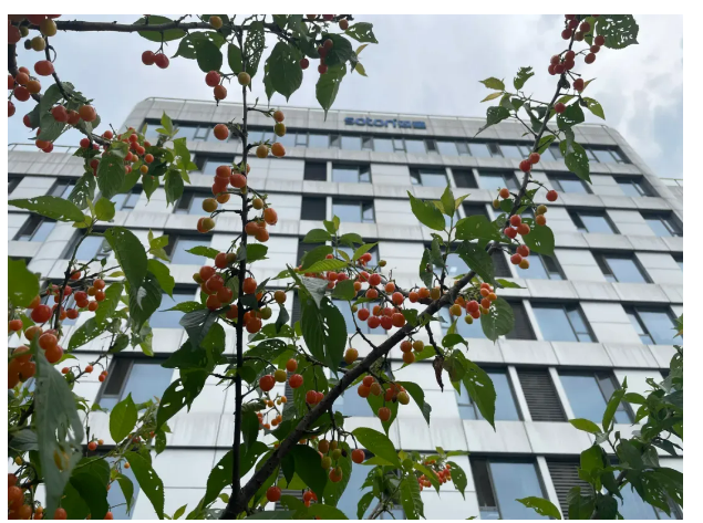 不只是屋頂花園,水池邊、宿舍樓下和小花園,雙童每個(gè)角落都被樓總栽上了櫻桃樹,讓員工們?cè)诠ぷ髦啵p松實(shí)現(xiàn)“櫻桃自由”~