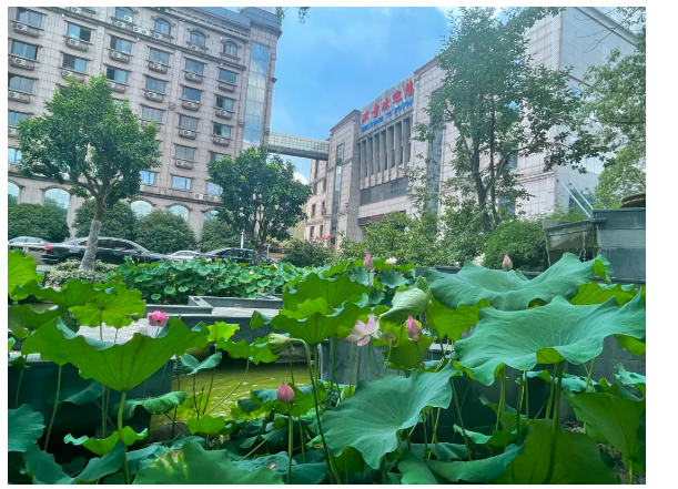 如果到了夏天,站在木橋上,滿眼皆是田田的荷葉,它們挺出水面,高高聳立,宛如一群身著華麗舞裙、亭亭玉立的舞者,在微風(fēng)中輕輕搖曳,毫不夸張,是真的讓人流連忘返~