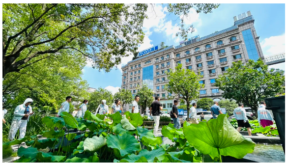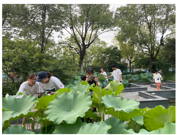 夏天的傍晚,員工們?nèi)齼沙扇郝綐蚺?,沉醉荷池美景。聽瀑布潺潺,看斜陽映水,魚兒游弋,簡(jiǎn)直美得像一幅畫~