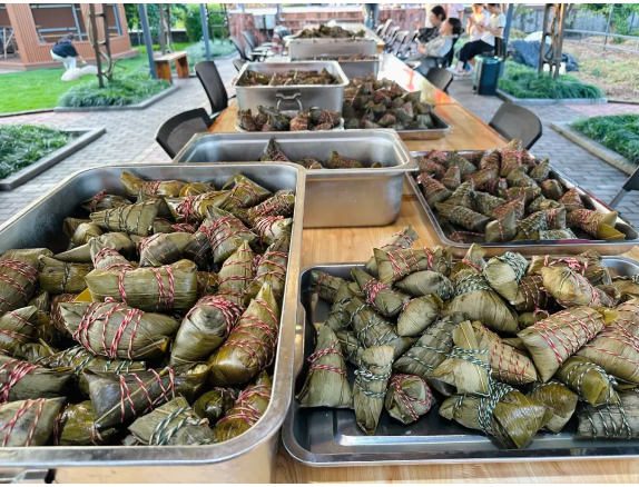 今年后勤部門也是早早地為大家準(zhǔn)備好了各種粽子餡料,肥糯五花肉、寓意高中的狀元豆… 統(tǒng)統(tǒng)安排上啦!滿足五湖四海的雙童人口味,全都真材實(shí)料看得見(jiàn)!